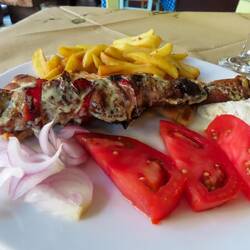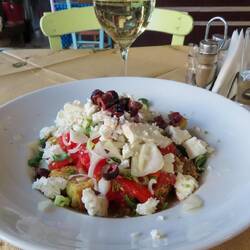 On my way home I find a restaurant called El Greco. It is not too busy and it has shade. I have a nice meal with a salad and souvlaki with a glass of wine. There wine here is very good. I always ask for a local wine and have never been disappointed. I head home for a shower and some much needed rest.Read more