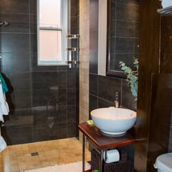 Now the bad. The bathroom is tiny> I mean really tiny. The shower is a decent size with a high-end rain shower combo unit. Plenty of hot water and good water pressure. The sink is tiny on 15” X 8”. No counter space to put a tooth brush or anything. There are no shelves to put your things on so everything stays in your toiletry bag. There aren’t any shelves in the shower either. I use bar shampoo and soap and there is no place to put them while showering. This is very inconvenient. There are no towel bars to put wet towels on to dry either. Next is the toilet. It is a large toilet with an elongated bowl. Not the toilet that should be in this bathroom! There is only 5” from the edge of the toilet to the wall there is no way to sit (or stand, depending on anatomy) and do your business. You would think that if they used a tiny sink, they could use a toilet that would allow for ease o use. Check out the pictures and have a laugh. I wish that people who rent out these units would spend a few nights in them to see how things flow. I’m only here for 4 nights, so I can make it work.Read more