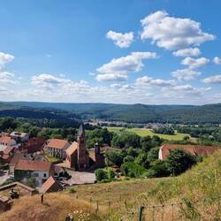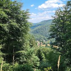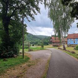 Kleine wandeling door de natuur richting Reipertswiller. Maar man wat was de terugweg vervelend. We moesten een zeer stijle heuvel op bestaande uit asfalt.