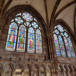 Het is een gotische Kathedraal uit de 13de eeuw met een astronomische klok uit de 16de eeuw met een glas en lood ramen.