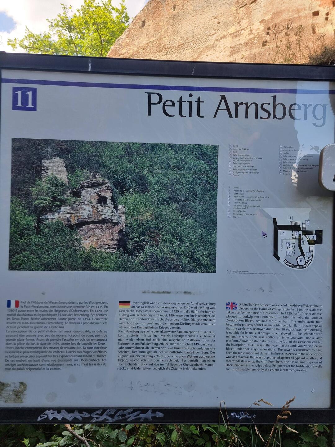 Dit is Kasteel Petit Arnsberg. Het is niet bekend wanneer het gebouwd is, alleen dat het overgenomen is door het huis van Ochsenstein in 1340. Voor meer informatie: zie foto 1.