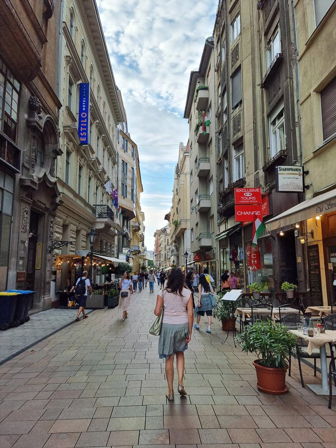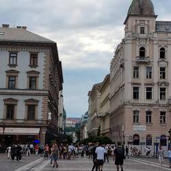 Váci Utca is eigenlijk een grote winkelstraat. Het is een beetje te vergelijken met de Kalverstraat in Amsterdam, maar alleen met meer souvenierwinkels.