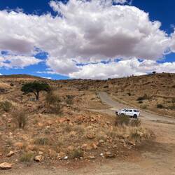 Gestartet in Windhoek und gleich die erste Passstraße gefunden! 😁 Bis auf ein loses Nummernschild scheinen modernere Wagen sowas auch zu können!