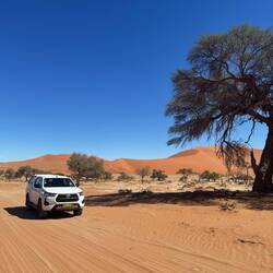 Wir haben uns gegen den Touri-Shuttle entschieden und fahren lieber selber durch den Treibsand, um mitten in der ältesten Wüste der Welt zu landen 🏜️☀️