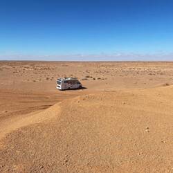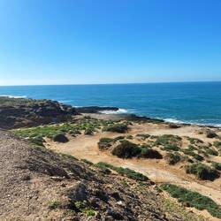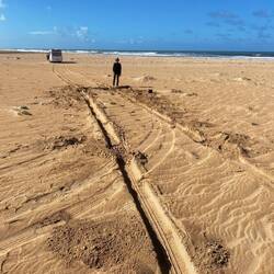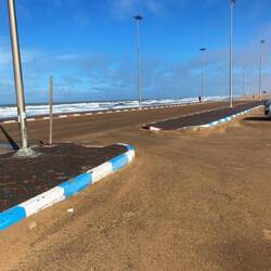 5 Km. Schottapiste zurm Strand. Danach waren wir gut durch geschüttelt. Nach einer kurzen Pause, ging es 1,5 Km zu Fuß durch Wüstensand weiter zum Strand.
