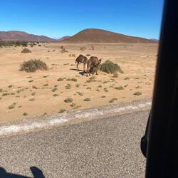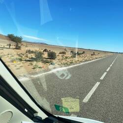 Auf der Fahrt durch die Wüste, frei laufende Kamele gesehen. Eine lange aber sehenswerte Fahrt auf schlechten Straßen 😎