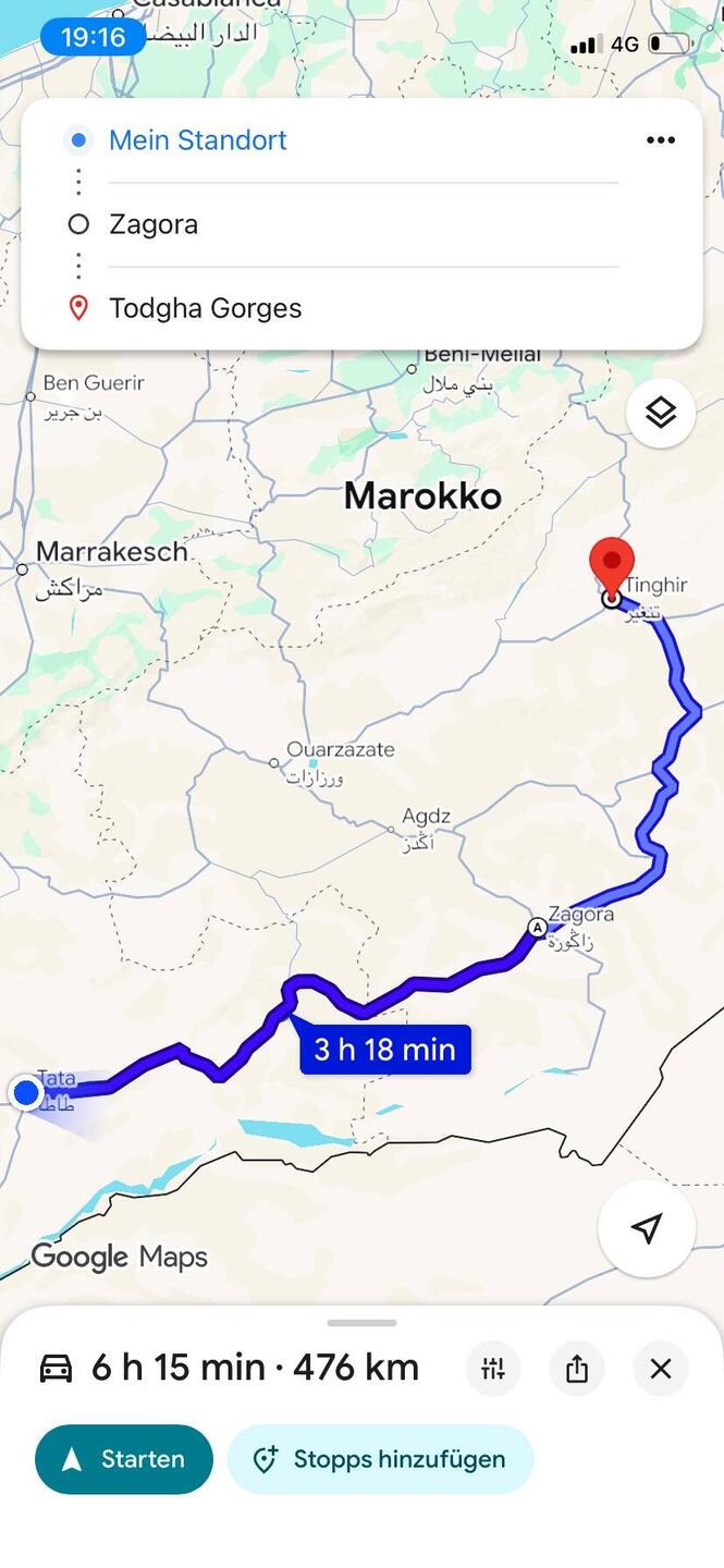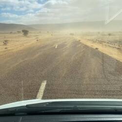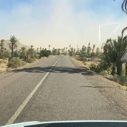 Spanende Anreise Richtung Zagora. Wir sind circa 120 km durch einen heftigen Sandsturm gefahren, teilweise mit Sichtweiten unter 50 m.