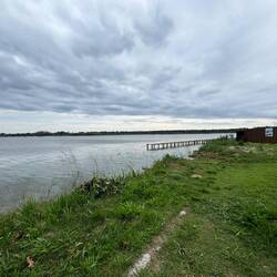 The campsite is on the banks of a reservoir so we just picked a direction and followed the shore. It was a bit confusing as to what point we actually left the campsite, but as soon as we couldn’t see any other people or campervans around we let Marla off lead and she went potty following all the rabbit scents. She lost us a couple of times. I could see her though so it was okay. She really enjoyed going into the water here, it was quite shallow at the edge and then a fair drop off. So we played some fetch into the water so she could have a swim out, she had a very lovely time.