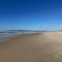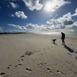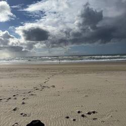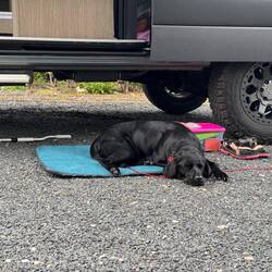 Charlie went down to the beach to do a workout at around 9am. I took Marla down later on in the morning (once her breakfast had gone down) for a final walk up and down the beach as we are moving camp today. There’s a lot more people around today, so I couldn’t let her off lead (a fair few small children), but we had a lovely walk.