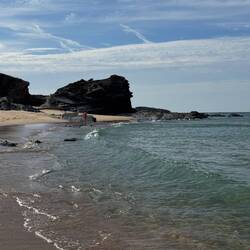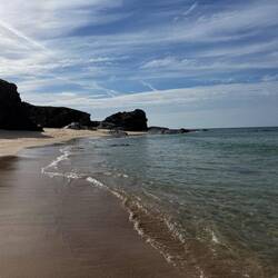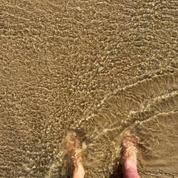 This afternoon has been very nice weatherwise still couple of short sharp showers so we went to the beach again and it’s the nicest sand I think we’ve come across so far in the trip. I took my shoes off and let my toes sink into the sand and then went into the sea so that my eczema could have some seawater on it. I was so busy taking pictures of my little toes in the sea that I didn’t see this big wave come up and get me and my shorts got wet.