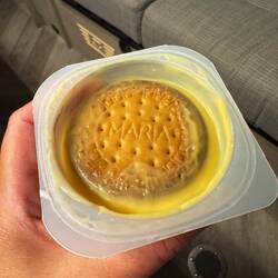 We had pizza for dinner so in the van. We’re getting very good at cooking pizzas in our oven, even though one almost ended up on the floor today - but I saved it ….just. Dessert was a very strange thing that I bought from Lidl. It was like a rich tea biscuit on the bottom, some kind of sweet cream in the middle and then sweet egg yolk on top. I thought it was very tasty. Charlie wasn’t convinced but I’d eat it again.
