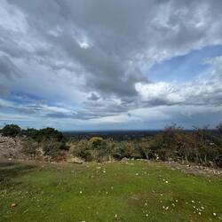 It was a mixed bag of terrain, we started off on the side road from camp and followed it up, up and up where once we’d gone past the last house on the road, it turned into a narrow footpath that was really well maintained in terms of vegetation and trees. The path itself was a mix of rock and grass - fairly easy to walk on. It then carried on as a mixture of cobbles and dirt track all the way into the town. Then it was just a case of following small side roads until we got to the centre of town. It was interesting to see that some of the trees have residual fire damage - you can see a line on them where their bark has been damaged. And all the olive trees we saw were all at the same height, so it looked like they’d all be re-planted at the same time.
