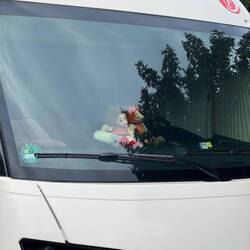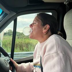 I didn’t take many photos today. Charlie captured Marla looking out of the window wondering where I’d gone when I went off and did the washing up. I also took photos of the ladies and children’s toilet block signs to send my sister to show it’s an easy mistake to make to go into the children’s block 😂😂 He got a few sneakies of me practicing my bubble gum skills while driving 😂Okumaya devam et