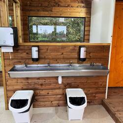 This site is a bit odd, there are quite a few static caravans and car park type spaces for campervans / motorhomes but it feels like we are just behind someone’s house. There’s basic facilities (no toilet paper!) and one of the toilets is out of action completely,