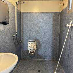 For the rest of the morning, I did some crochet and had a shower and Charlie did a campsite workout. This is one of the best showers so far - the bathrooms are absolutely massive and there’s proper bath mats on the floor for you to stand on when drying. It felt like you were almost in someone’s house.