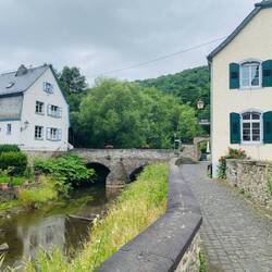 Nach einer kleinen Pause geht es weiter durch schöne Abschnitte, die so gar nicht nach Eifel aussehen. 😃. Kurz vor dem Erreichen von Oberdürenbach kommt die Ruine Ohlbrück in Sicht.