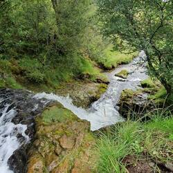 Schottland Aug. 2023TravelerWasserfall gegenüber Ruine August 9, 2023 in Scotland ⋅ ☁️ 14 °C 0 likes Trip