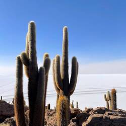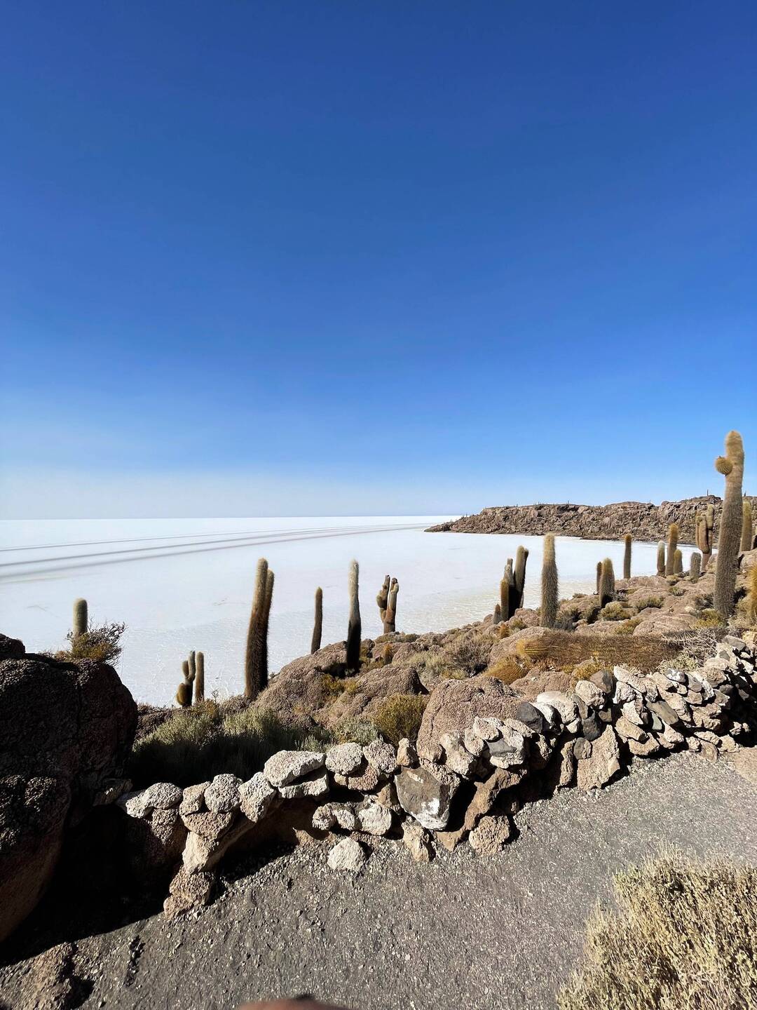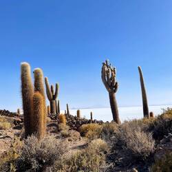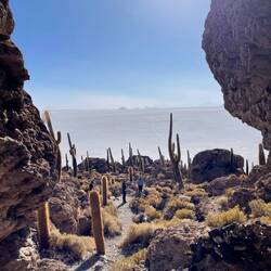 Ziemlich absurdes Schauspiel. Irgendwie passt die weiße Salzlandschaft nicht zu einer Insel mit Kakteen.