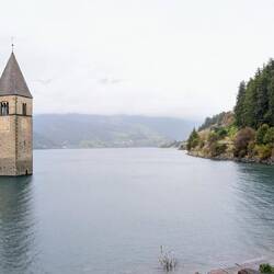 Das Wetter spielt leider nicht mehr mit. Die Wolken hängen tief, es regnet immer wieder. Nur ein paar Kilometer hinter Nauders erreichen wir den Reschenpass und schon sind wir in Italien. GanzBaca lagi