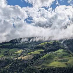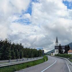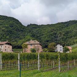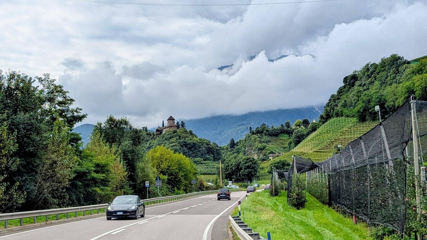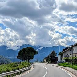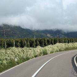 Heute brechen wir wirklich auf. Bei einem Sonne-Wolken-Mix fahren wir durch riesige Apfelplantagen, die durch Weinberge abgelöst werden. Wir befinden uns auf der Strada del vino dell’Alto Adige,Baca lagi