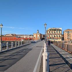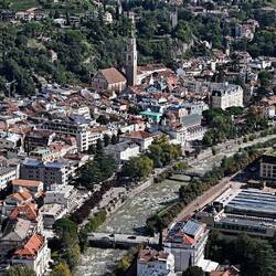 Nach dem heftigen Regen gestern scheint heute trotz der anderslautenden Vorhersage wieder die Sonne. Wir gehen an der Etsch entlang Richtung Zentrum, an der aus dem 19. Jahrhundert stammendenBaca lagi