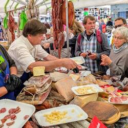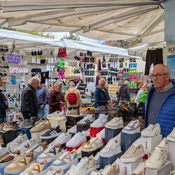Eigentlich wollen wir heute aufbrechen. Zuerst gehen wir noch auf den großen Wochenmarkt vor dem Bahnhof. Hier gibt es alles, von Obst, Gemüse, Wurst und Käse, Schuhe und Bekleidung. DabeiBaca lagi