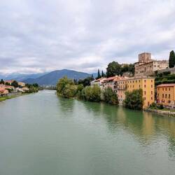 Heute morgen werden wir vom Hahn des Hauses Poli geweckt und mit seinen beiden Hühnern vor unserer Tür begrüßt. Wir fahren die paar Kilometer bis zum Ort Bassano del Grappa. Die historischeBaca lagi