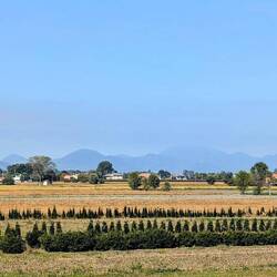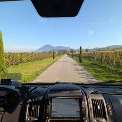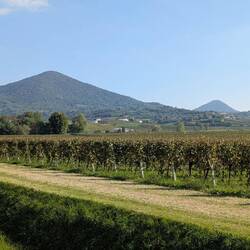 Nach dem flachen Land der letzten Tage wird es Zeit, in etwas hügeligere Landschaft zu fahren. Da bieten sich die Euganesischen Hügel, die Colli Euganei, an. Nur ca. 50 Kilometer von ChioggiaBaca lagi