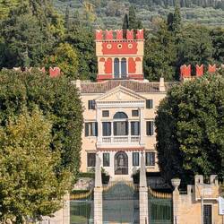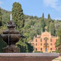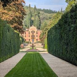 Die Wolken beziehen sich erst gegen Mittag und wir starten mit dem Motorrad wieder über kurvige Straßen bis zur Villa Barbarigo. 14 Euro ist ein stolzer Preis für den Eintritt, dafür ist der ParkBaca lagi