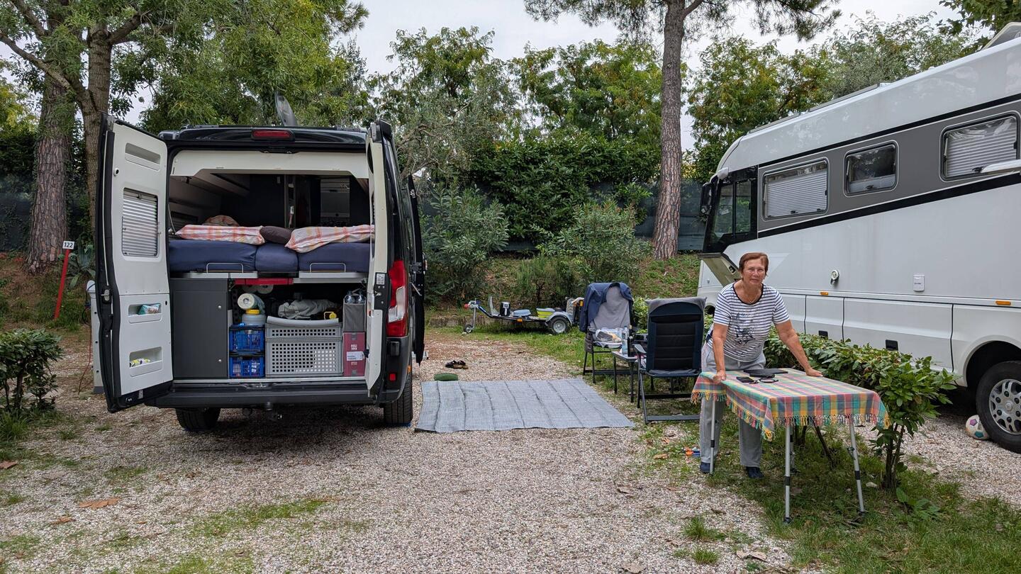 Bei blauem Himmel und Sonnenschein sieht Cittadella gleich noch schöner aus. Trotzdem machen wir uns auf den Weg, kaufen unterwegs ein und fahren Richtung Treviso und Jesolo. Dort kommen wir an derBaca lagi