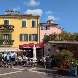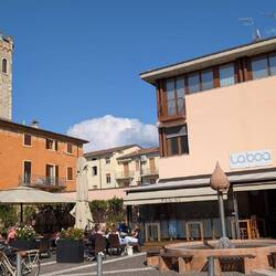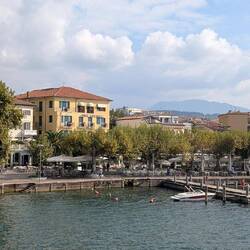 Wir gehen gemütlich zum Anleger in Bardolino, wo das Schiff ablegt. Wir fahren heute nach Salo am Westufer. Nach gut einer Stunde kommen wir an. Salo liegt geschützt in einer schmalen Bucht. HinterBaca lagi
