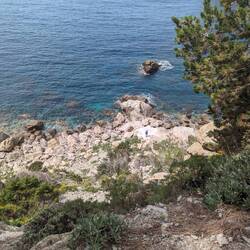 Start der Wanderung ist ein grosser Parkplatz mit Pinien bei Isla Blanca. Von dort geht man bergab auf der erodierten Straße immer Richtung Küste. Am Meer muss man über einige Felsen kraxeln. WerRead more