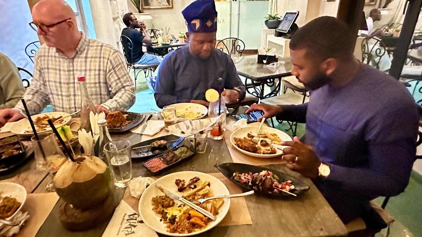 Ein schönes Restaurant mit leckeren ghanaeschen Spezialitäten. War zwar sehr „spicy“ - aber die Stimmung zwischen uns und unseren Gästen (Idris Bello mit Kollegen) von Lofty Inc. Fond war bestens. 🔥