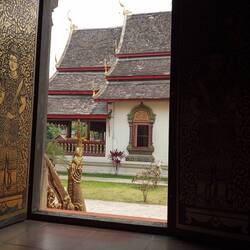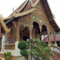 Aujourd'hui, réveil tardif. J'ai visité le temple Wat Chiang Man à quelques pas de l'hostel.