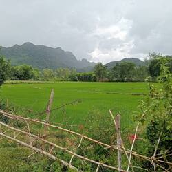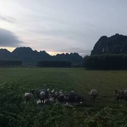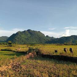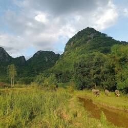 En fin de matinée, j'enfourche un vélo pour me rendre au pied du mont Hang Mua.