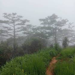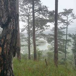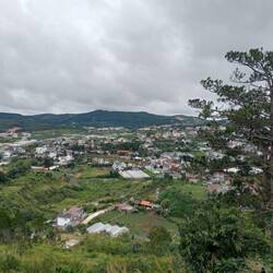 Aujourd'hui, je pars randonner autour de Da Lat. J'alterne entre forêt de pins et routes jusqu'à arriver au pied du mont Samson 🦶