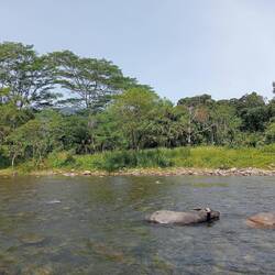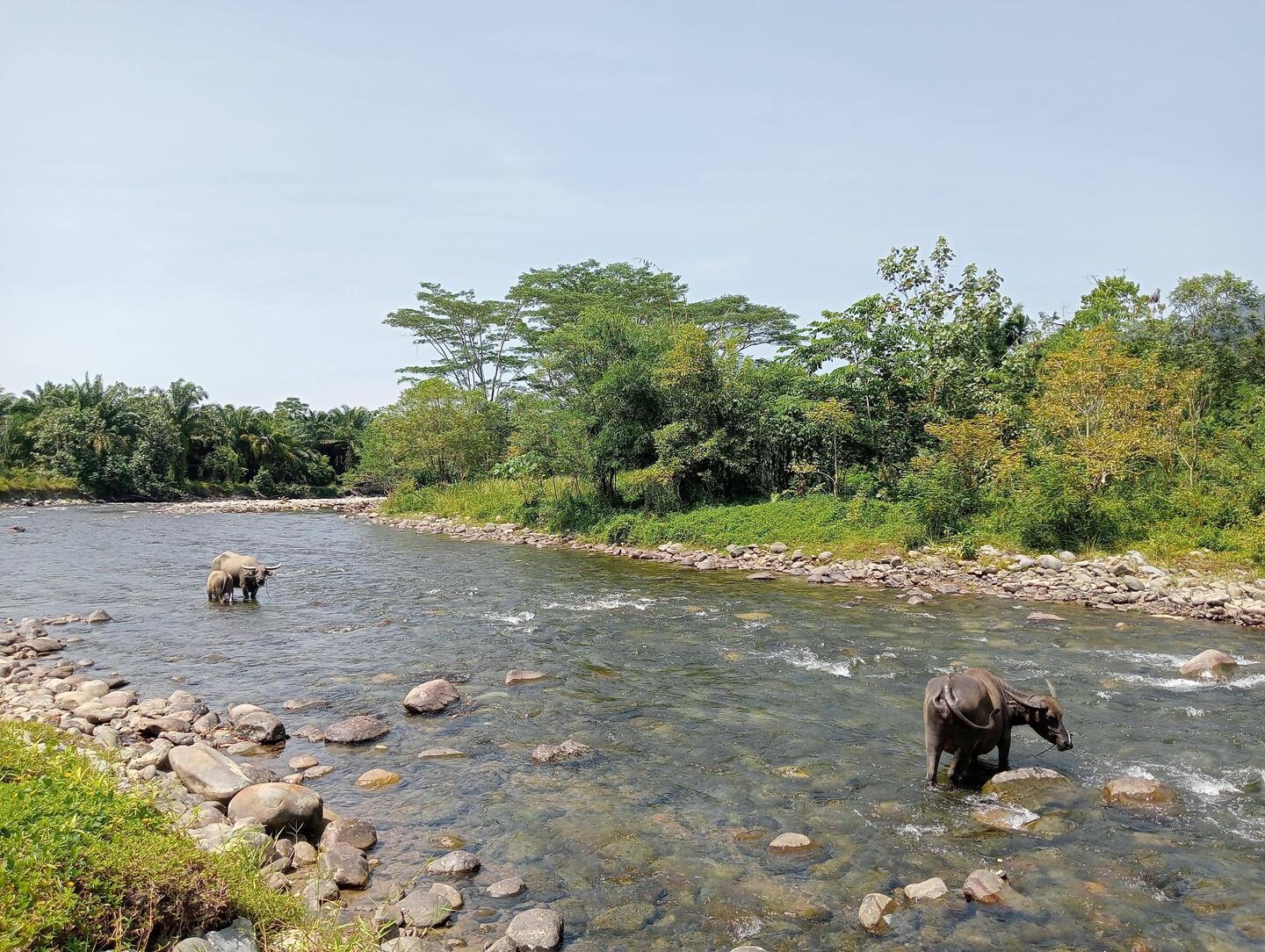 Ce matin, je longe la rivière qui passe juste derrière notre camp. Des buffles s'y rafraîchissent (photo 1 et 2). J'évolue principalement dans des plantations d'huile de palme (photo 4) mais deもっと詳しく