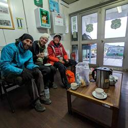 Um 00:30 klingelte der Wecker und um 1:23 liefen wir bei Schneefall los. Die erste Flussüberquerung hatte es schon ordentlich in sich! Wir stand alle erst einmal ratlos da. Eva war die Erste und ichLeggi altro
