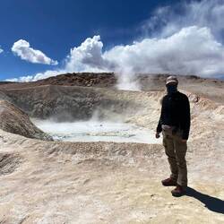 Morgens ging es wie gesagt wieder früh raus! Zu erst an die chilenische Grenze an der wir noch warten mussten bis 8:00. Wie ich mittlerweile schon bei meiner letzten Grenzüberquerung von Argentinien nach Chile nun wusste 😂 Wer allerdings zu erst in der Schlange stand kam umso schneller nach Bolivien, sprich früh losfahren lohnt sich. Das Tor ging auf und beim zweiten Mal durften wir auch reinfahren. Zum Glück waren wir schnell durch! Es kam das erste Kennenlernen der Gruppe zu Stande. Und so stellen wir fest dass ich zwei von den Herren schon kannte. Wie zu den Zeiten in Australien als man 2000km weiter xy wieder getroffen hat. Wir hatten uns damals als ich die zwei Pumas gesehen hatte ganz kurz ausgetauscht. Nun habe ich deswegen auch zwei bessere Bilder eingefügt 🥰 Nach der bolivianischen Grenze gab es Frühstück und das Fahrzeug wurde gewechselt. Vom Bus ging es in den Toyota mit Allrad und das Gepäck wurde auf dem Dach in eine Plane eingewickelt. Nun konnte es losgehen. Von der Laguna Blanca zur Laguna Verde über die Desierte Dali. Bei den Aguas Termales durften wir vor dem Mittagessen, wäre hätte es bei diesem Namen nicht erraten, baden. Vollgestopft ging es weiter. Meine Nase half mir beim nächsten Stop mal wieder sehr. Bei den Geiser Sol del Mañana roch es anscheinend mal wieder herrlich 🤪 An dieser Stelle erreichten wir den höchsten Punkt der Tour (4900Hm). Ich merkte die Höhe schon sehr. San Pedro lag auf 2500Hm was ein Anstieg von fast 1500Hm bedeutete. Zum Glück lag unser Hotel auf 4000Hm was aber dennoch für einen langsam anstieg etwas zu schnell für mich war. Ich wusste mittlerweile, dass ein gute Höhenakklimatisierung bei 600Hm pro Tag ungefähr lag. Die Anzeichen bei mir waren Appetitlosigkeit, Kopfschmerzen und ich bin seit langem mal wieder um 20:00 im Bett gelegen und hab 10Std am Stück geschlafen 😜.