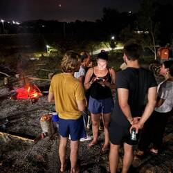 Am Abend gab es dann den besagten bzw. von mir gefürchteten Karaokeabend. Niklas und Jolie wollten am Abend zuvor schon singen. 🙈 Für die Vietnamesen ist Karaoke auch das Größte, es gibt denke ich so gut wie niemanden von ihnen der nicht ausflippt allein schon bei dem Gedanken daran. So wurde das Lagerfeuer angeworfen und die riesige Musikbox mitten ins Nichts gestellt, YouTube angeworfen und gegrölt. Dabei wurde natürlich immer wieder gefilmt, damit man für Facebook genügend Filmmaterial hatte. Um kurz vor 21:00 verkrümelte ich mich, denn ich hatte noch ein Telefonat mit einer lieben Freundin.