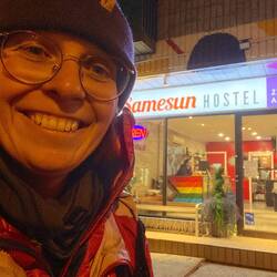 Mit einer Kurve durch die Stadt ging es zum Bahnhof, Bea abholen 🥰 Treffen Nr.2! Gepäck am Hostel abgeben und die Runde durch die Stadt kann beginnen. Am Eisschloss wurde schön eine RundeBaca lagi