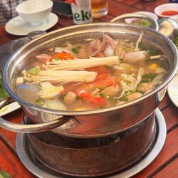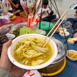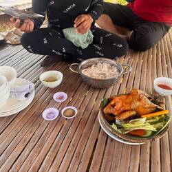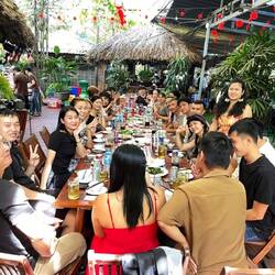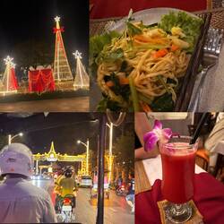 Sarah hatte mich bevor ich angekommen bin schon gefragt gehabt ob ich mit zum Neujahrsessen kommen möchte. Logisch war ich da gleich dabei ☺️ So war ich morgens noch in meinem Homestay geblieben denn um kurz nach 11:00 sollte es losgehen. Was ich nicht bedacht hatte war, dass ich auf einen Roller sitzen durfte. Bei der Assistentin konnte ich mitfahren. Ich hoffte jetzt schon wieder heil zurückzukommen. Der Verkehr ist hier echt der Wahnsinn! So fuhren wir los und ich war zum ersten Mal auf einem Roller mitten im Getümmel! Nach geschätzten 15min kamen wir an einem echt netten Flecken an. Es war für solche Festlichkeiten ausgerichtet. Überall wurde gefeiert, ab und an wurde auch Karaoke gesungen. Ich setzte mich an einen Tisch der sich immer mehr füllte. Neben mir saß Sophia aus Kirgisistan. Sie war Englisch Lehrerin, weswegen ich mich mit ihr gut unterhalten konnte. Sie ist schon das zweite Mal in Vietnam und war ingesamt mehrere Jahre schon hier.