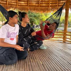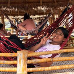 Zwischen dem Wechsel der Märkte wird eine gemeinsame, längere Mittagspause gemacht. Meistens wird ein ruhigerer Ort angefahren mit Hütten in denen gegessen wird und sich jede Menge Hängematte befinden in denn man einen Mittagsschlaf hält. Den Teil vom Tag mochte ich sehr. 😁😉
