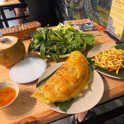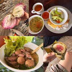 Ich startete wieder spät in den Tag und machte es mir unten im Eingangsbereich bequem. Irgendwann gegen Mittag kam Coung und nahm mich mit zum Mittagessen. Coung ist Arzt und Mitgründer des Homestay. Selbst möchte er auch noch reisen, aber erst muss er noch heiraten, davor geht es für ihn nicht. Er war echt ein netter und fleißiger Kerl. Nebenher verkaufte er auch noch online getrocknete Früchte. Im Eingangsbereich standen mehrere Kartons davon, welche er umpackte und an die Kunden Versand. Das er mich zum Essen eingeladen hatte war mir nicht recht aber ich musste es wohl akzeptieren. Ich ging bis zur nächsten Essens Verabredung mit Sarah in die Küche. Der Ort an dem sich so oft der soziale Treffpunkt befindet. Dies traf hier definitiv auch zu! Nicht nur einmal kam ich in die Küche und es standen unzählige Schüsseln voll mit unterschiedlichen Leckereien darauf. Dieses Mal unterhielt ich mich mit Mebel und Sophie. Es ging darum dass Rami aus Ägypten plötzlich ausgezogen sei. Er meinte wohl, dass man ihn nicht mögen würde. So wie ich ihn einschätze nach der kurzen Zeit wo ich ihn kennengelernt habe, liegt das Problem eher bei ihm aber gut. Um 17:00 hatte Sarah ein kleines Fenster frei für ein frühes Abendessen. Es ging zu einer netten älteren Dame die in einer Straßenküche richtig leckere Sachen zauberte. Sarah ließ irgendwie das komplette Paket auffahren. Vor dem dritten Gericht war ich schon pappsatt. Lecker war es natürlich dennoch. Sarah hatte mich noch einmal herzlich zu sich nach Hause eingeladen über das Neujahrsfest. Ich hoffte so, dass es klappen würde, da ich sie auch echt mochte und es natürlich sehr schön wäre den höchsten Feiertag der Vietnamesen in einer einheimischen Familie verbringen zu dürfen. Zum Nachtisch, gab es wie soll es anders sein ein Mattcha Latte. 😁 Dann schwirrte sie sich schon wieder davon. Ich packte schon einmal meine Sachen, denn Morgen war schon wieder Zeit für das nächste Abenteuer. Am Abend durfte ich dann für die Allgemeinheiten unterrichten. Da ich zu diesem Vergnügen nur einmal kommen sollte, war ich nur auf Kommunikation aus. Es waren vier Schüler. Wir unterhielten uns über alles. Es ging einmal darum wie teuer es ist betrunken in Vietnam Roller zu fahren. Sollte man erwischt werden wären umgerechnet 400€ fällig. Bei einem Durchschnittsgehalt von ca. 300$ ein Vermögen. Ich fand richtig Spaß daran zu unterrichten! Mal schauen wann ich wieder dazukommen würde.