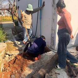 Die erste Schicht ging für uns immer um 8:00 bis 10:00 los und die Zweite von 15:00 bis 17:00. somit konnten wir mit der zweiten Schicht einsteigen, wobei mir Pflanzen setzen dürften. Ob diese jemals anwachsen würden bei dem lehmigen Boden bezweifelte ich stark. Ein tolle Abwechslung war dann das Füttern der Schweine.