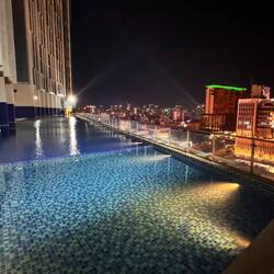Paul und Xenia waren schon am Frühstücken. Ich gesellte mich dazu und ließ den Tag langsam beginnen. Der Bitexco Financial Tower war mein erstes Anlaufziel. Durch die Stadttour die ich gleich bei meiner Ankunft gemacht hatte, hatte ich erfahren dass es möglich war an Stelle der Aussichtsplattform in einer Bar die Aussicht zu genießen. So suchte ich mir eine schöne Route bei Komoot und lief los. Mit etwas suchen fand ich den Eingang. Ich sollte umgerechnet 13€ für den Cocktail bezahlen und dann dürfe ich nach oben fahren. An sich hier ein Vermögen, aber für den Anlass war es für mich in Ordnung einmal deutsche Preise zu bezahlen. Als hätte ich es gerochen. Ab 11:00 durfte man hochfahren. Um 10:58 war ich dort und durfte gleich hoch. Ich genoss als erster Gast die Stadt von oben. Es gab einen sehr lecker alkoholfreien Cocktail mit zwei leckeren Häppchen. Mir wurde auch angeboten herumzulaufen um die Komplette Vielfalt der Stadt von oben betrachten zu können. Dies musste mir nicht zweimal angeboten werden. Es gab sogar einen Helikopterlandeplatz auf der Etage. Der gehobene Standard war ich ohne Zweifel sofort zu spüren! Ich bliebe eine Stunde, bevor ich mich wieder auf den Weg nach unten machte. Das nächste Ziel war die Kathedrale Notre Dame von Saigon. Leider waren die Haupttürme gerade einpackt und wurden restauriert. Ich sah nur eine Rosette an einem Seiteneingang. Über die Bücherstraße ging es von District 1 wieder in mein Stadtviertel 4. An unzähligen Luxusgeschäften kam ich vorbei. Das Touriviertel war hier unverkennbar. Louis Vuitton und wie sie alle heißen sind hier zu finden. Froh in meiner kleinen Oase angekommen zu sein, gönnte ich mir einen leckeren Eistee und einen Obstsalat. Ich hatte eine Empfehlung für ein Massagesalon erhalten und freut mich nun auf die 90min. Die Art und Weise ist verglich zu unserer Massage komplett anders. Es wird auf einem spaziert, die Arme langgezogen,… Insgesamt war es sehr erholsam. Im Lokal ums Eck gönnte ich mir mein Abendessen und ließ den Tag mit einem Film ausklingen. ☺️