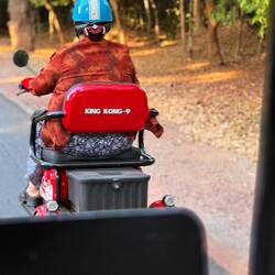 Samnang hatte mir nicht gesagt, das wir in der Stadt bleiben würden. Ich hatte ihn auch nicht gefragt denn davor kam er ja immer nach Hause🤪 Nichts hatte ich dabei bis auf das was ich an hatte. So kam ich mir wie auf dem PCT vor, mit der Ausnahme dass ich am Abend eine Dusche hatte und von der Nichte von Samnang, die in derselben Wohnung wohnte, einen frischen Schlafanzug. In eine riesigen Shopping Mal kaufte ich mir noch eine Zahnbürste. So verbrachte ich die Tage um die Hauptstadt bis es zurück aufs Land ging mit einem Roller, welcher Samnang am Morgen gegen 6:00 mal schnell gekauft hatte. Er war noch nicht so lange verheiratet und seine Frau war bis dahin nicht mobil. Den Wunsch konnte gut nachvollziehen.
