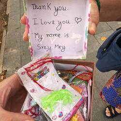 So langsam hieß es sich verabschieden. Freitag war der letzte Tag wo ich unterrichten durfte. Ich fuhr am Morgen mit Pannah, dem Mann von Sarah noch einmal vor zur Straße, damit ich etwas Obst für das Abschiedsessen kaufen konnte. Warum auch immer, aber ich musste drei Wassermelonen kaufen. Im Endeffekt war es aber echt gut. ☺️ Unterrichtet hatte ich nicht wirklich mehr. Pannah hatte die Kids alle schon so organisiert dass sie saßen. Er sprach ein paar Worte und ich tat es ihm nach. Ich wünschte den Kindern alles gut, dass sie fest an ihre Träume glauben sollten. Ich konnte ihnen von Herzen nur das Beste wünschen. Sie konnten mir noch Fragen stellen. Ein Mädchen wollte wissen wann ich denn wieder kommen würde. Die Kids und ich hatten uns sehr lieb gewonnen. Womit ich dann gar nicht gerechnet hatte, waren Geschenke. Mehrere Mädchen hatten kleine Täschen gefüllt mit Kleinigkeiten, wie Haarspangen und Süßigkeiten. Ich war sehr gerührt. Manche konnten natürlich nichts kaufen, da sie kein Geld besaßen. Sarah ließ deswegen alle Lieder für mich singen. Ich fing fast an zu heulen. Danach ging es an mein kleines Buffet. Am Schluss war alles verputzt! Nun spielten wir noch ein Spiel. Ich hatte Zahlen auf Zettel geschrieben und diese auf einem Tisch ausgebreitet. Nun gab es zwei Teams von denen immer eine Person nach vorne treten musste. Ich sagte eine Zahl und wer am schnellsten die Richtige gefunden hat, bekam einen Punkt. Es war ein sehr schöner Abschluss und sie werden mir definitiv alle sehr fehlen!!!