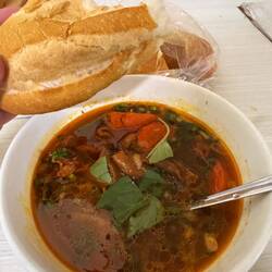 Etwas später als ich unten saß wurde ich von zwei Schülern aus dem Homestay zum Abendessen mitgenommen. Sie teilten mir mit, dass Sarah Angst hatte ich würde mich langweilen. Was echt lieb war aber nicht zutraf. Ich freute mich aber dennoch über die Begleitung und jemand Einheimischen um sich zu haben war immer klasse. Sie bestellten für mich Bun Bõ Hue. Eine Suppe mit Gemüse und Rindfleisch. Über das Essen konnte man sich definitiv nicht beschweren, es war einfach gut! Akzeptieren, dass ich wieder eingeladen wurde, musste ich dann noch. Fiel mir wie immer nicht leicht. Dafür lud ich dann später Aidyn ein. Wir gingen gemeinsam in ein Kaffee. Er kommt wie Sophie aus Kirgisistan und ist schon seit einer Weile in Vietnam. Er hat an unterschiedlichen Orten in HCMC gewohnt aber hier gefällt es ihm bis jetzt am besten, was ich sehr gut nachvollziehen konnte. Alle waren sehr freundlich und umgänglich.