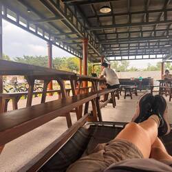Am Sonntag gingen wir kurz vor Mittag zum nächst gelegenen See. Die Fahrt dorthin war schon spannend. Ich konnte erstmals vom Auto aus die Umgebung erkunden. Für etwas Eintritt kamen wir in eine sehr angenehme Parkanlage mit unterschiedlichen Hütten, die direkt am See lagen. Jede war ausgestattet mit Hängematten und wer wollte konnte auch was zu essen bestellen. Zum Entspannen genau das Richtige. Ich bekam meine erste Kokosnuss zum Trinken! 😁 Richtiges tropisches Flair ☺️